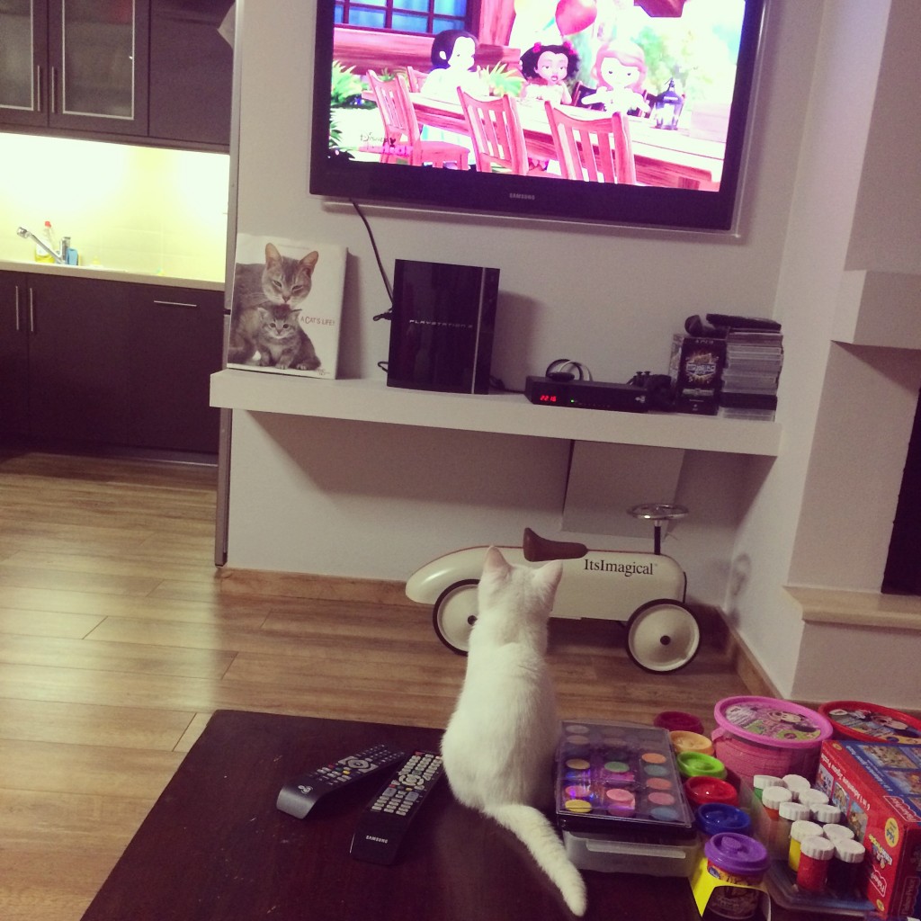 Ο Axell είναι ένας γατούλης Βρετανικής Κοντότριχης, κατάλευκος με πορτοκαλί μάτια.. Το θέμα είναι πως είχε σήμερα ραντεβού και δεν ήρθε ποτέ στο ιατρείο.. Ξέρετε γιατί; Γιατί ”κόλλησε” στα αγαπημένα του cartoon για μια ακόμη φορά…